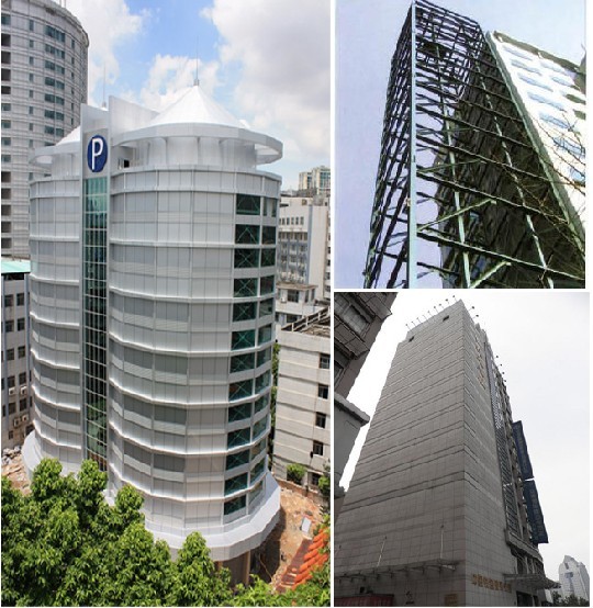 塔式立体车库设备 垂直升降(塔式)停车设备的工作原理是:用提升机将车辆或载车板升降到指定层,然后用横移机构将提升机上的车辆或载车板送入存车位。或是相反,通过横移机械将指定存车位上的车辆或载车