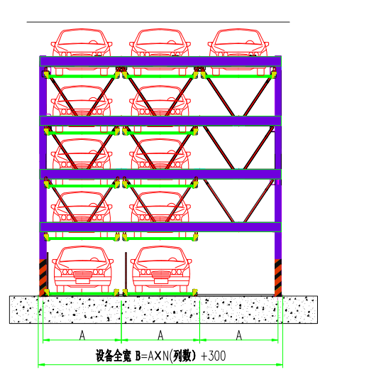 该设备的顶层载车板可上下升降;二、三、四层载车板既可升降,又可横移;底层载车板只做横移;二、三、四层和底层都有一个空位,可以通过横移载车板变换空位,使空位正上方的载车板下降到底层。底层载车板上的汽车可直接出车,完成存取过程。 特点 ●对有限的停车空间,可倍数停放车辆,可节省大量空间。 ●PLC可编程工程控制器控制,操作简单,存取方便。按钮、触摸屏、IC卡可任选。 ●升降驱动系统为钢丝绳四点吊挂式,运行平稳可靠,保证车辆升降安全。 ●设有防坠落装置,使用安全可靠,避免发生坠落事故。 ●光电检测,控制车辆规格及停放位置,使车辆有序停放。 ●光电安全检测,人员误入运行自动停止,确保车库的安全性。 ●设有急停按钮,非常情况下急停,避免发生意外事故。 ●装上常闭式电磁制动器,断电时可自动急停,确保车辆更安全。